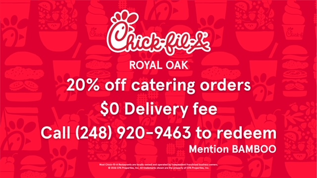Feeding your next team meeting just got easier: Chick-fil-A Catering is offering Bamboo members 20% off all catering orders + $0 delivery fee.